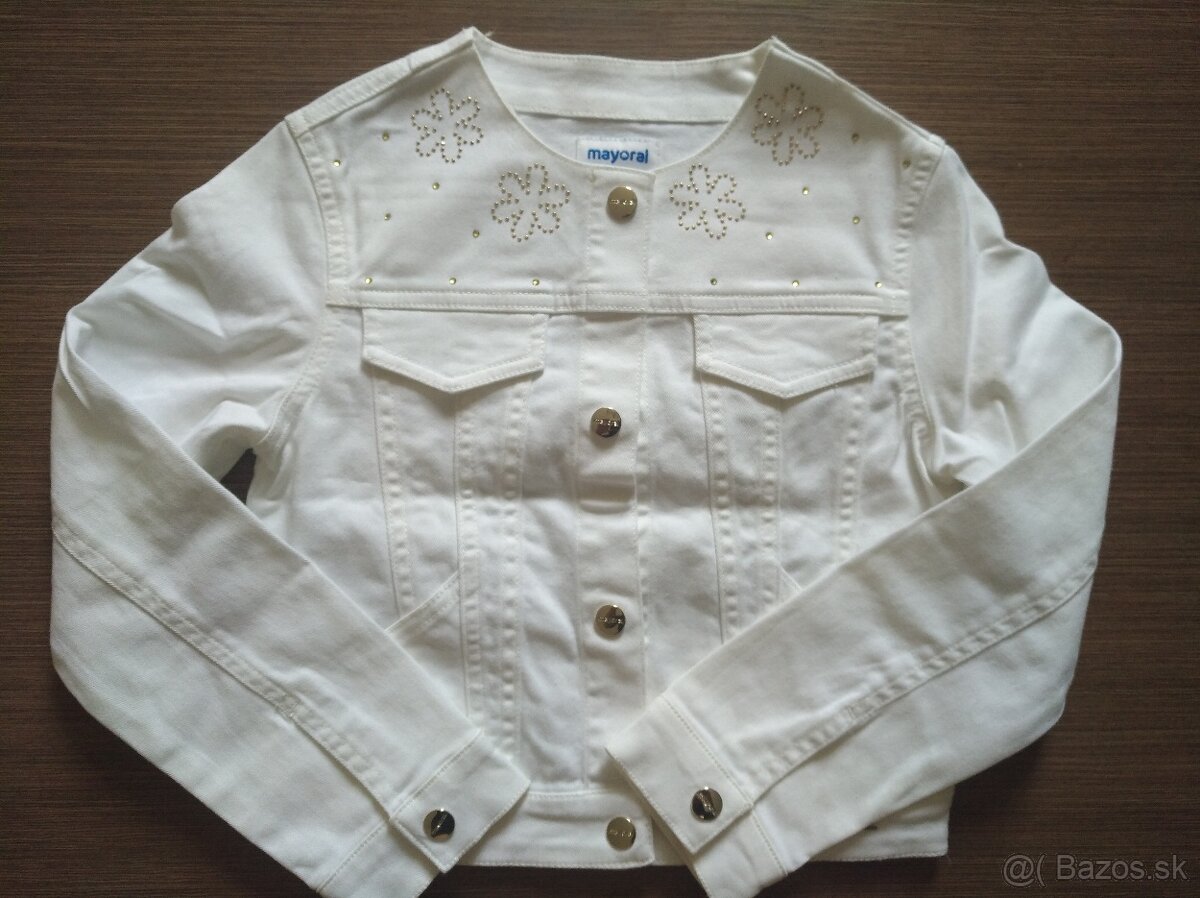 Predam bielu riflovu bundicku,znacka Mayoral,velkost 122.Vo velmi dobrom stave