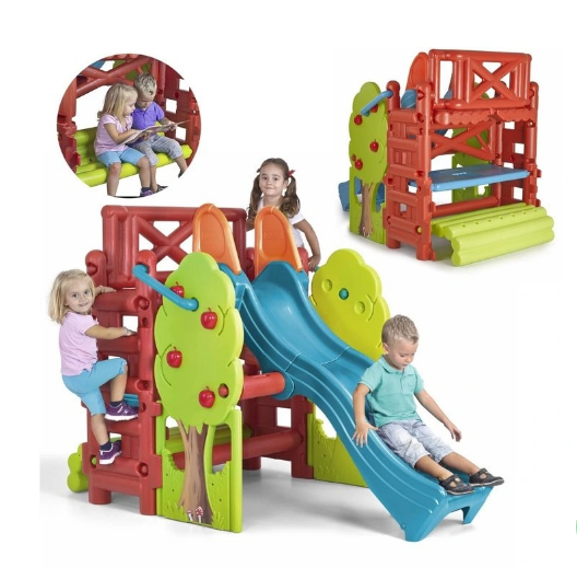 Feber Playground so šmykľavkou a stolom je farebné, stabilné ihrisko plné prekvapení, ktoré umožní batoľatám zažiť športové emócie. Poskytne potrebnú časť pohybu a rozvinie fyzickú zdatnosť pri zachovaní bezpečnostných pravidiel. Vyrobené na základe najnovších technológií a najvyšších bezpečnostných štandardov. Zábava a zábava zaručená!