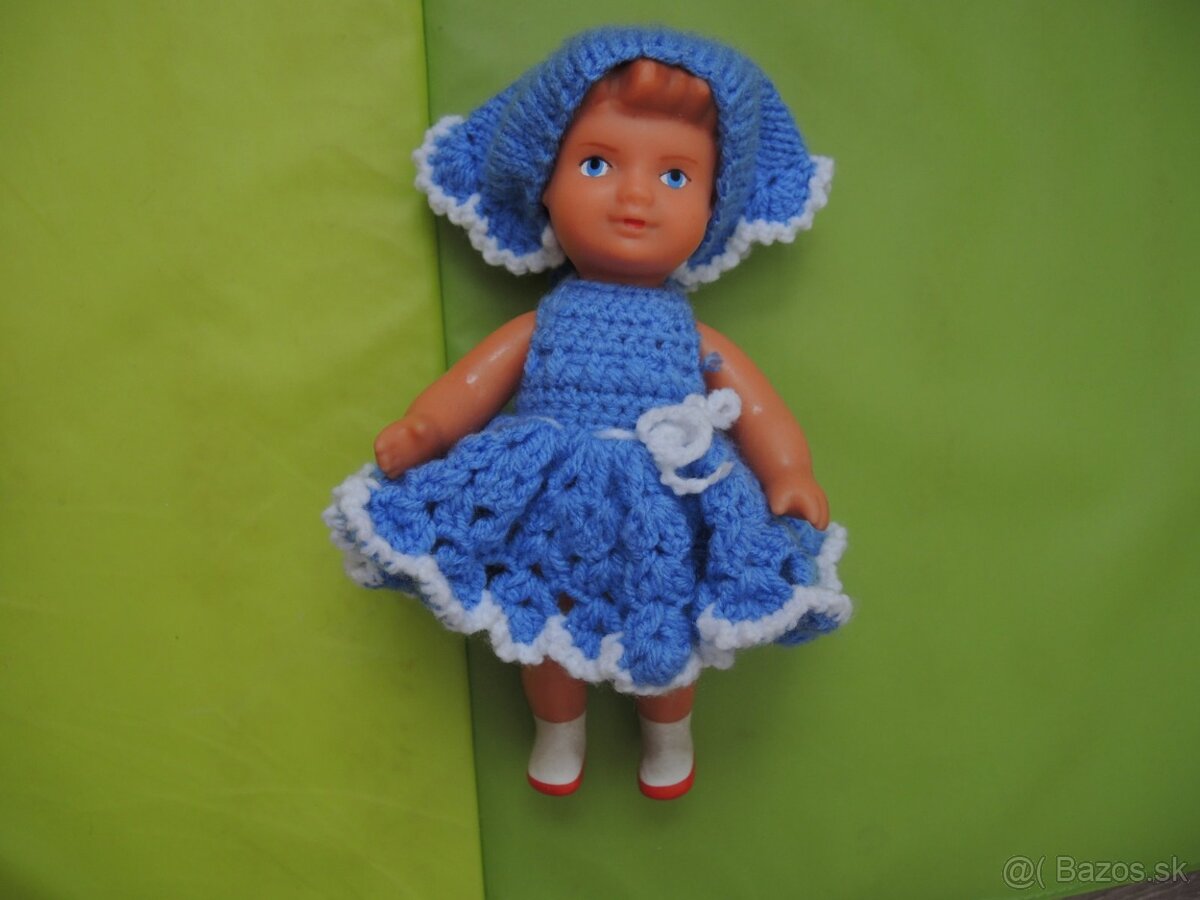 Predám bábiku gumotex Pavlínku v modrých šatočkách, peknučká, pršteky neohryzené, sem tam oškreninka na vláskoch, z výroby má jednu nôžku dlhšiu jenu troška kratšiu. .... Predám bábiku aj samostatne bez šatočiek, ak by bol záujem. Potom by stála bábika bez šiat 10 eur. Poprípade môžem predať samostatne len šatičky 6 eur - sú nové, iba raz oblečené, nehrané, robené na zakázku priamo na bábiku.