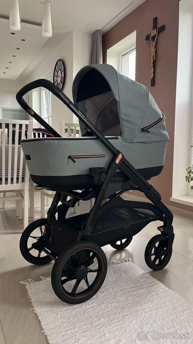 Ponúkame na predaj detský kočík, talianskej výroby, zn. Inglesina APTICA XT. Kupovaný je v Novembri 2024, použitý pri jednom dieťati, pravidelne čistený a udržiavaný. Je v 100% stave, ako nový. Je skonštrovaný z pevných rámov, a pevných materiálov, čiže je veľmi odolný. Podvozok má možnosť zmeny pruženia, buď mäkké, alebo tvrdé. Kolieska sú stredne veľké, čo kočíku dáva veľký komfort na hladkých povrchoch, no zároveň si dobre poradí s nerovnosťami povrchov, štrkovinou, trávnatým povrchom, či blatom, alebo snehom… Ako je vidieť na fotkách, súčasťou je buď hlboká vanička, alebo športová sedačka s veľa možnosťami zmeny polohovania, či zatienenia. Obidve časti je možné otáčať na podvozku - v smere a proti smere jazdy. Rukoväť má možnosť zmeny dĺžky, čo je veľkou výhodou pre rôzne vysoké osoby. V podvozkovej časti je veľký úložný priestor. Menšie prepážky a kapsičky sú šikovne umiestnené aj na vaničke, či športovej sedačke, nechýba držiak na fľaštičku. K vaničke máme ešte stojan, ktorý po rozložení (podobne ako sušiak), ponúka možnosť, napr. po príchode domov, zobrať bábätko vo vaničke a tá sa dá upevniť do stojana, umiestneného niekde v dome. Bábätko takto môže kľudne spať bez prerušenia. V prípade potreby zbaliť kočík do auta, je to možné urobiť pár jednoduchými pohybmi, čo trvá max. 10 sekúnd, kočík netreba rozoberať, dá sa vložiť do kufra bežného auta (Octavia, Golf…). Rozložiť sa dá asi troma pohybmi, čo zaberie možno 5 sekúnd. To robí kočík veľmi praktický a spratný aj pre uloženie v domácnosti. Pôvodná cena kočíka bola 950€. My ho ponúkame na 700€.