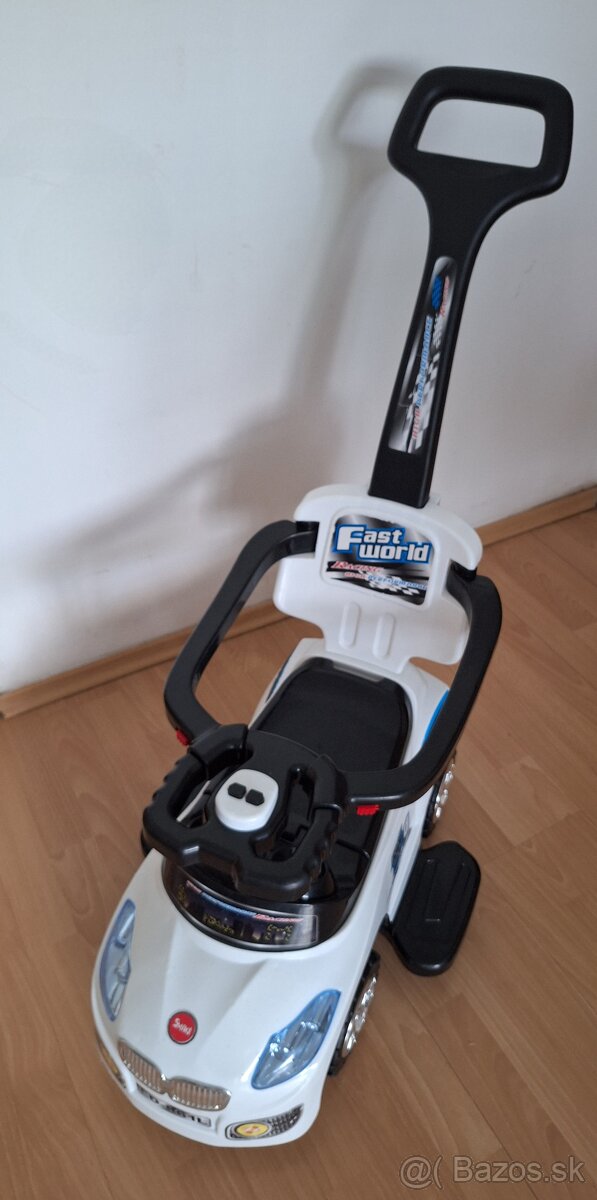 Na predaj auto na tlačenie, alebo ako odrážadlo, bočnice sa dajú odopnúť ako aj stupienky a dieťa sa môže odrážať samé, v sedadle úložný priestor.